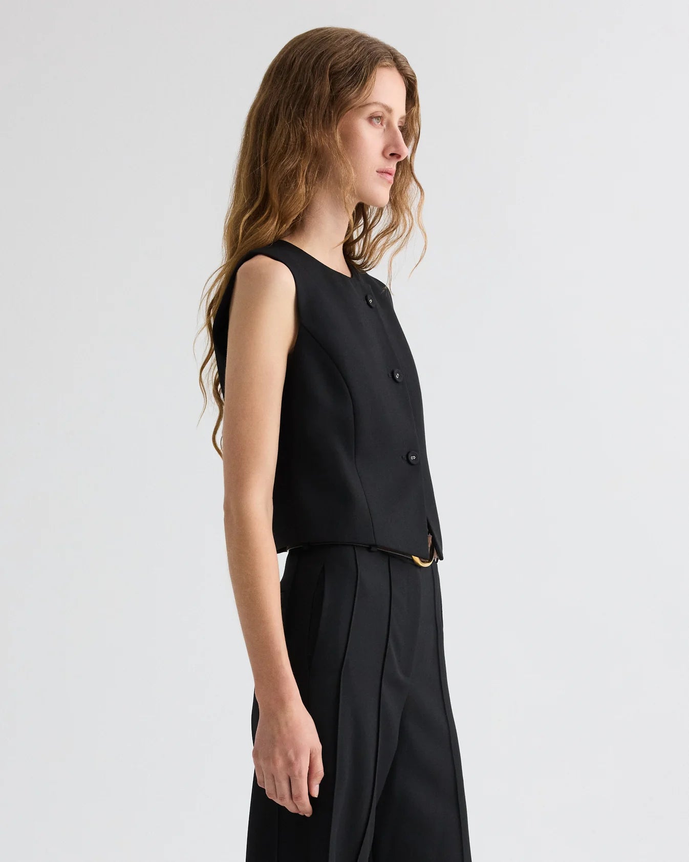 TWP Perry Vest in Compact Tux Suiting - Black