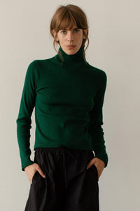 Ulla Johnson Aurelia Jersey Long Sleeve Turtleneck Top - Midnight Lily