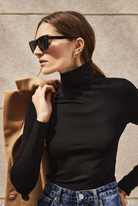 - Fitted turtleneck with long sleeves and center back seam detail.