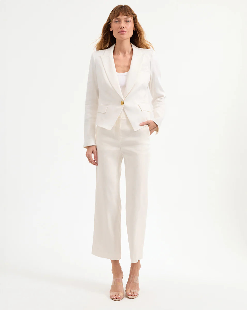 Our best-selling Hosanna jacket is back, now in linen. This classic piece features single-breasted tailoring, seaming at the waist for a flattering finish, and a crisp notched lapel. Its linen blend keeps it easy and cool year-round. This chic style pairs well with everything from floral dresses to jeans.Pair with a dickey to complete the look.