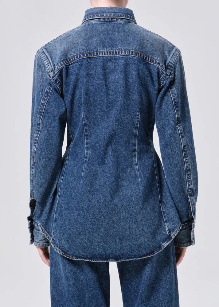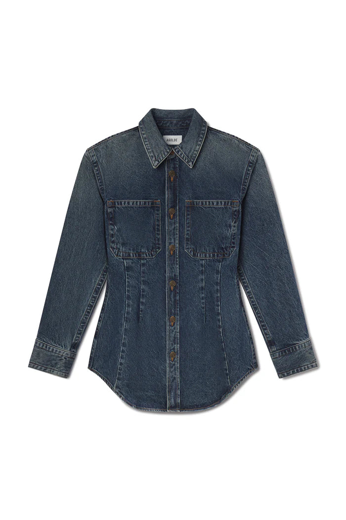 Agolde Wilma Denim Jean Shirt - Form (Marbled Dark Indigo)