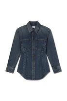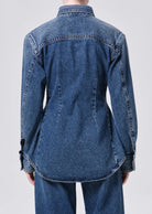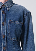 The Wilma Shirt reimagines classic denim with a sculpted, tailored shape. Designed in a Marbled Dark Indigo wash, it features front pockets, a button front closure, and subtle contour seaming that defines the waist. Crafted from a soft yet structured non stretch cotton blend, this weightless denim delivers dimension and comfort while maintaining a refined silhouette.