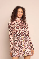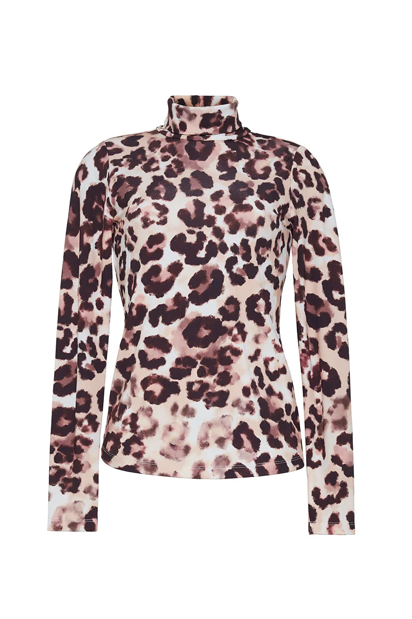 Cara Cara Suzie Fitted Mock Jersey Turtleneck - Abstract Cheetah Ivory