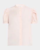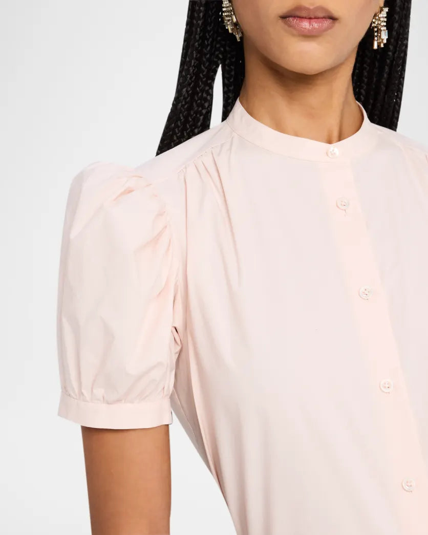 Quintessentially FRAME, The Gathered Top has puff sleeves enhanced by gathered detailing. Feminine, yet polished, the blouse also features a stand collar.
