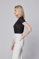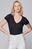 Majestic Filatures Stretch Linen S/S V-Neck - Noir