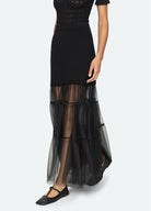 SEA Seraphine Tiered Tulle Sheer Skirt - Black